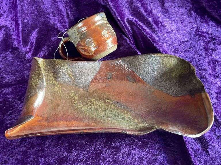 LOT 547 - Handmade Stoneware Serving Plate with Small Cup