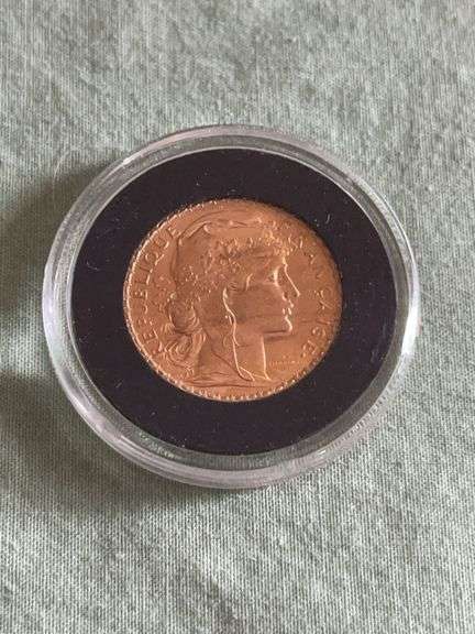 LOT 77 - Gold 1908 French Republic 20 Franc Coin